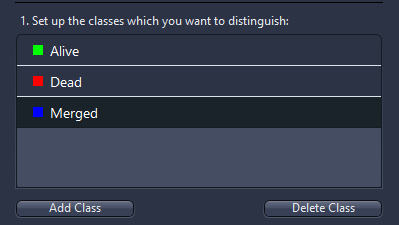 - To change the label color for a class, click on the color field of the list entry and select one from the window.