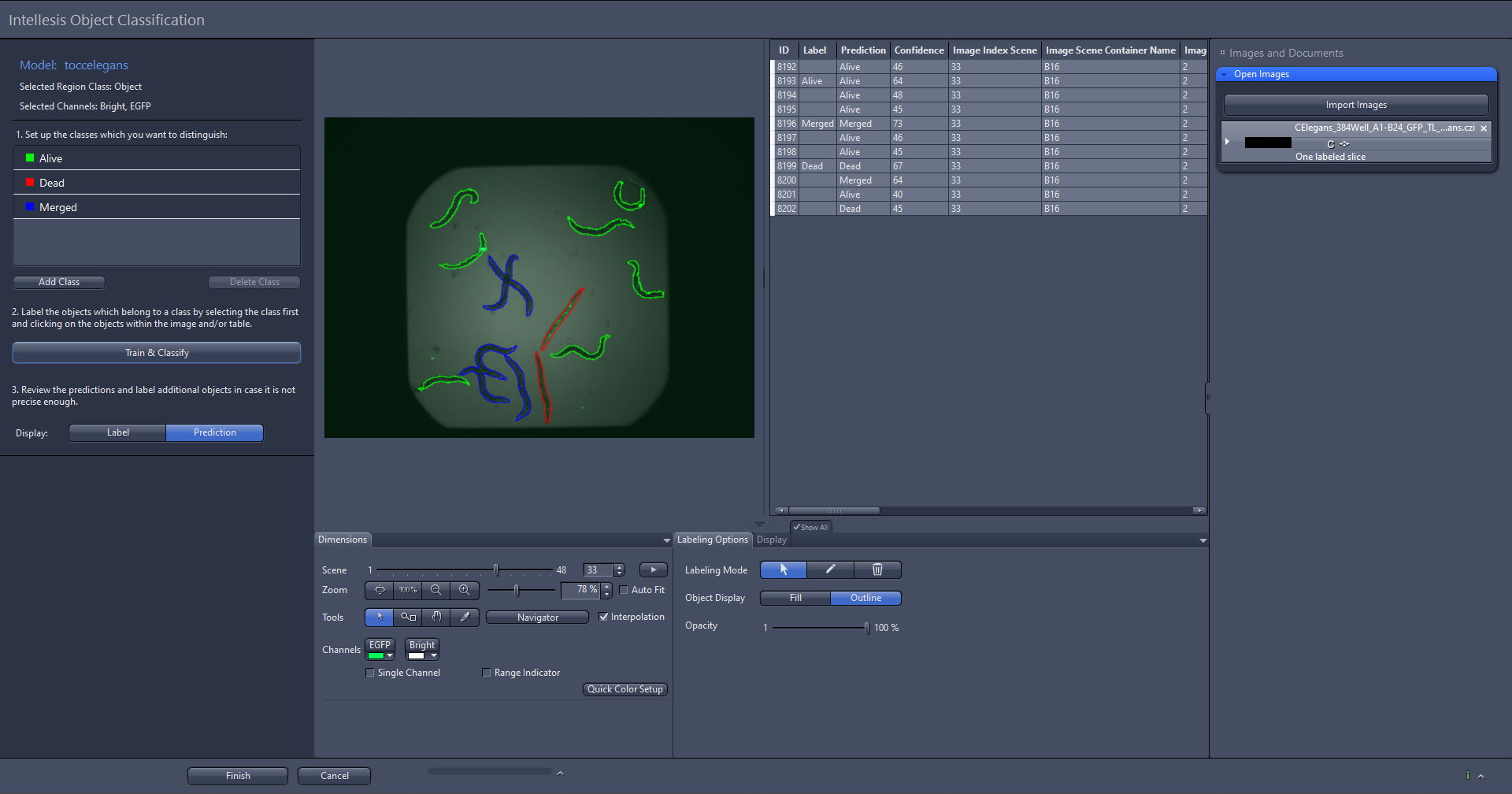 - If you are not satisfied with the result, you can label more objects, click Train & Classify again, and iteratively improve your results.