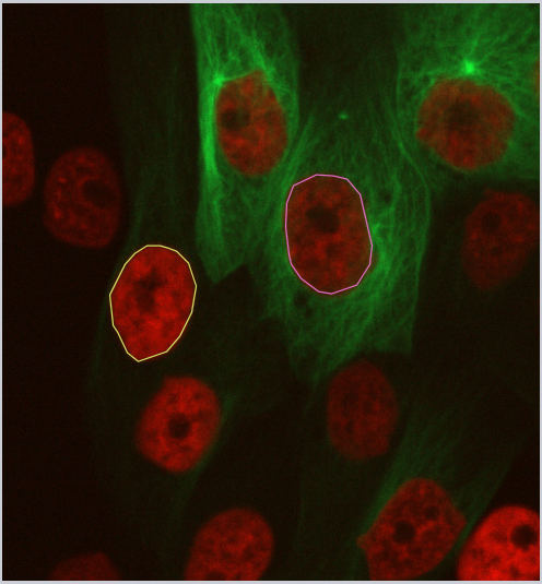 For the purpose of the example, assume the threshold = 50. ZEN thresholds Wavelength 2 to obtain:
