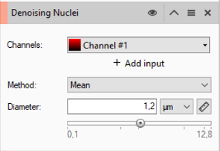 Set of operations performing noise reduction. Choose the more suitable method based on your sample and define the diameter.