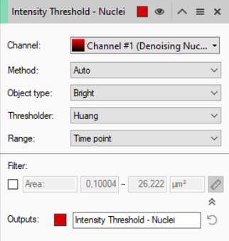 This method uses a single threshold and segments all intensities below or above it. The threshold is automatically calculated based on the data. |