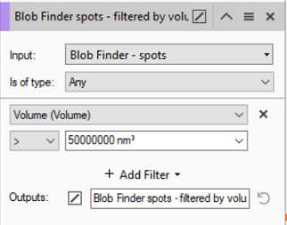 The previously detected objects are filtered by the selected feature (e.g., Volume). The used criteria can be set from the dropdown list. Multiple features can be set.