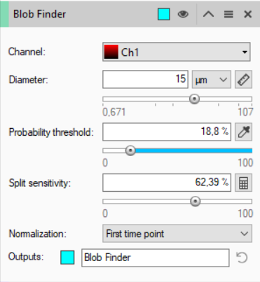 This guide explains you how to track cells or particles with lineage using the pipeline with the Blob Finder and Tracking operation. The purpose of the pipeline is to track objects, detected using the Blob Finder operation, gathering its motion features (direction, speed, linearity, and etc.) . Tracks division or fusion can be detected (lineage). It can be applied to cells, nuclei, or any detected structures.