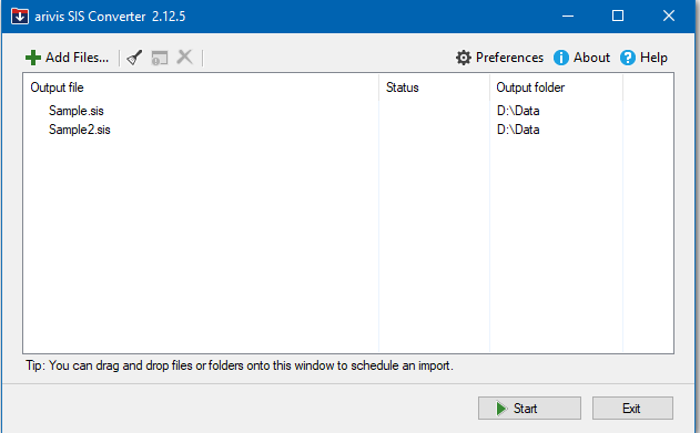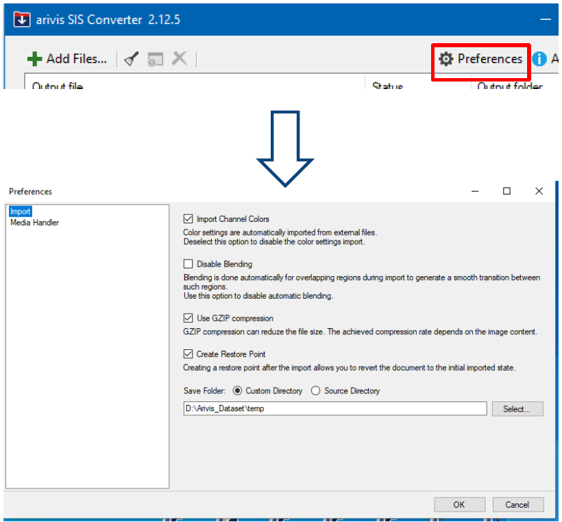 - The arivis SIS Converter dialog opens.